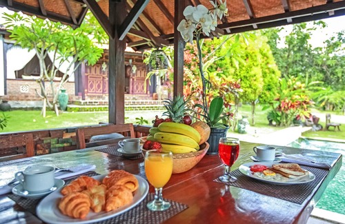 All four rooms at the main structure are air-conditioned. Although the house is made of ex-used material, the visitors must feel happy with it by the air-conditioning, at least they can sleep peacefully. If there are still some more young people who wish to sleep in a simple way (open room), the Bale Kebo - large pool bale - can also be used as 'emergency room' with some mattresses on floor. All is at guests' own plan.
