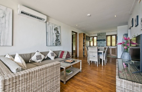Guests are welcome to enjoy all parts of the resort gardens, grounds, and shared natural stone infinity pool which has plenty of inflatables, toys, and sun beds for all!